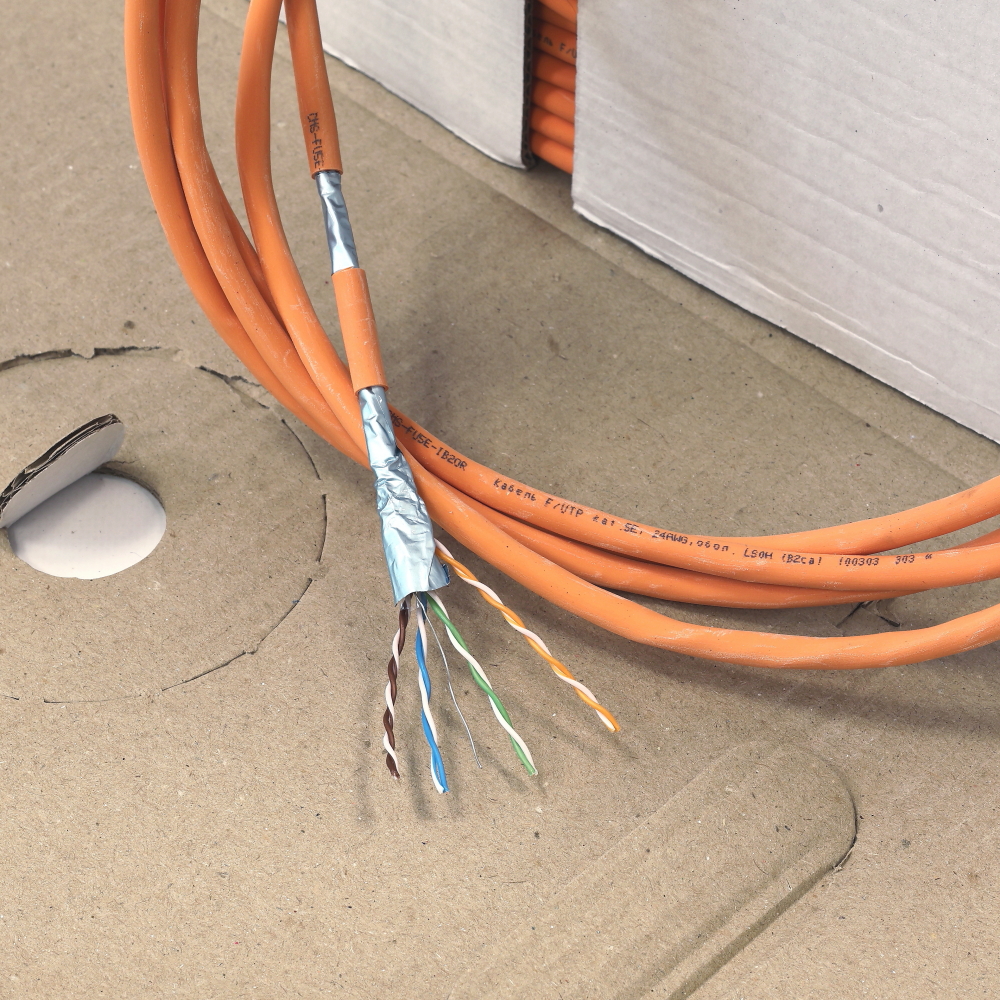 Вита пара кат 5е F/UTP в LS0H(B2ca) оболонці призначена для використання всередині приміщень при побудові структурованих кабельних систем (СКС) або систем відеоспостереження. Вісім мідних провідників перерізом 0.51 мм (24AWG) захищені ПВХ оболонкою білого кольору. Кабель підтримує підключення до мережі Ethernet на швидкості 1 Гбіт/с., проходить тестування та відповідає стандартам ISO 11801 та TIA 568. Провідники кабелю скручені попарно та захищені поліетиленовою оболонкою з кольоровим маркуванням для зручності монтажу. Міцна зовнішня ПВХ оболонка не схильна до розтягування і призначена для використання всередині приміщень.