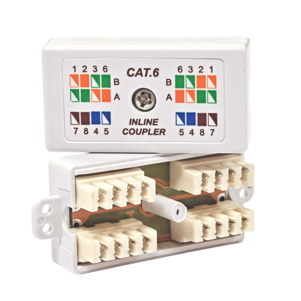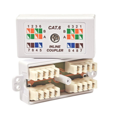 З'єднувальна коробка забезпечує з'єднання мідного кабелю категорії 6 з мінімальним затуханням сигналу. Коробка складається з розбірної пластикової коробки з IDC-контактами для кабелів, які можна легко підключити. Кришка кріпиться за допомогою гвинта. Корпус коробки має на верхній частині кришки схему рекомендованого розташування жил кабелю по Т568А та Т568B.