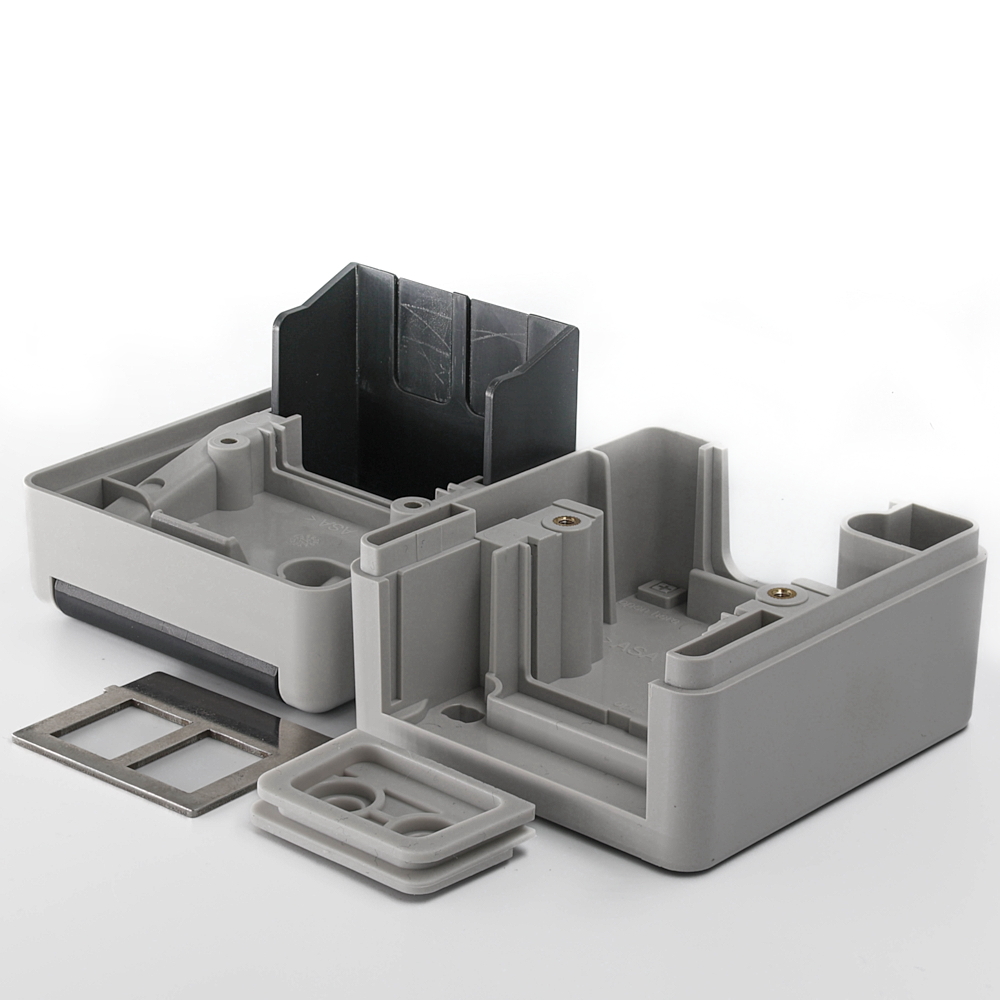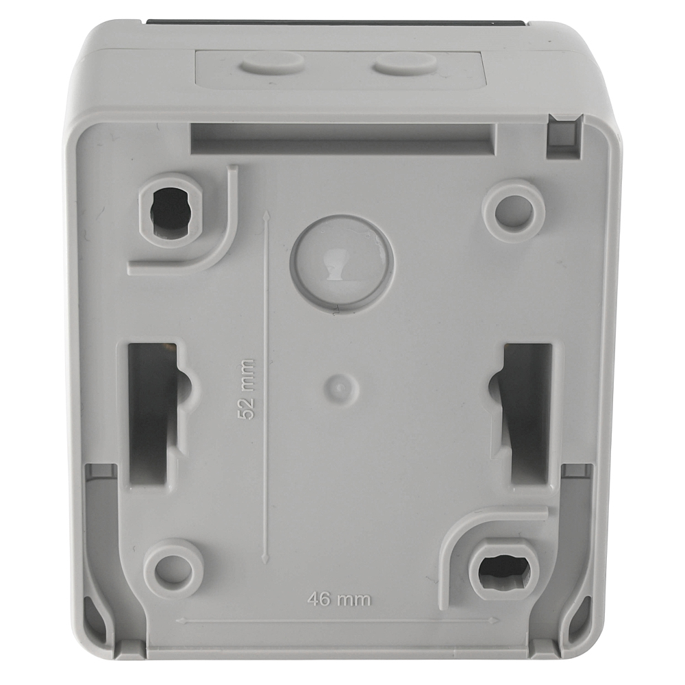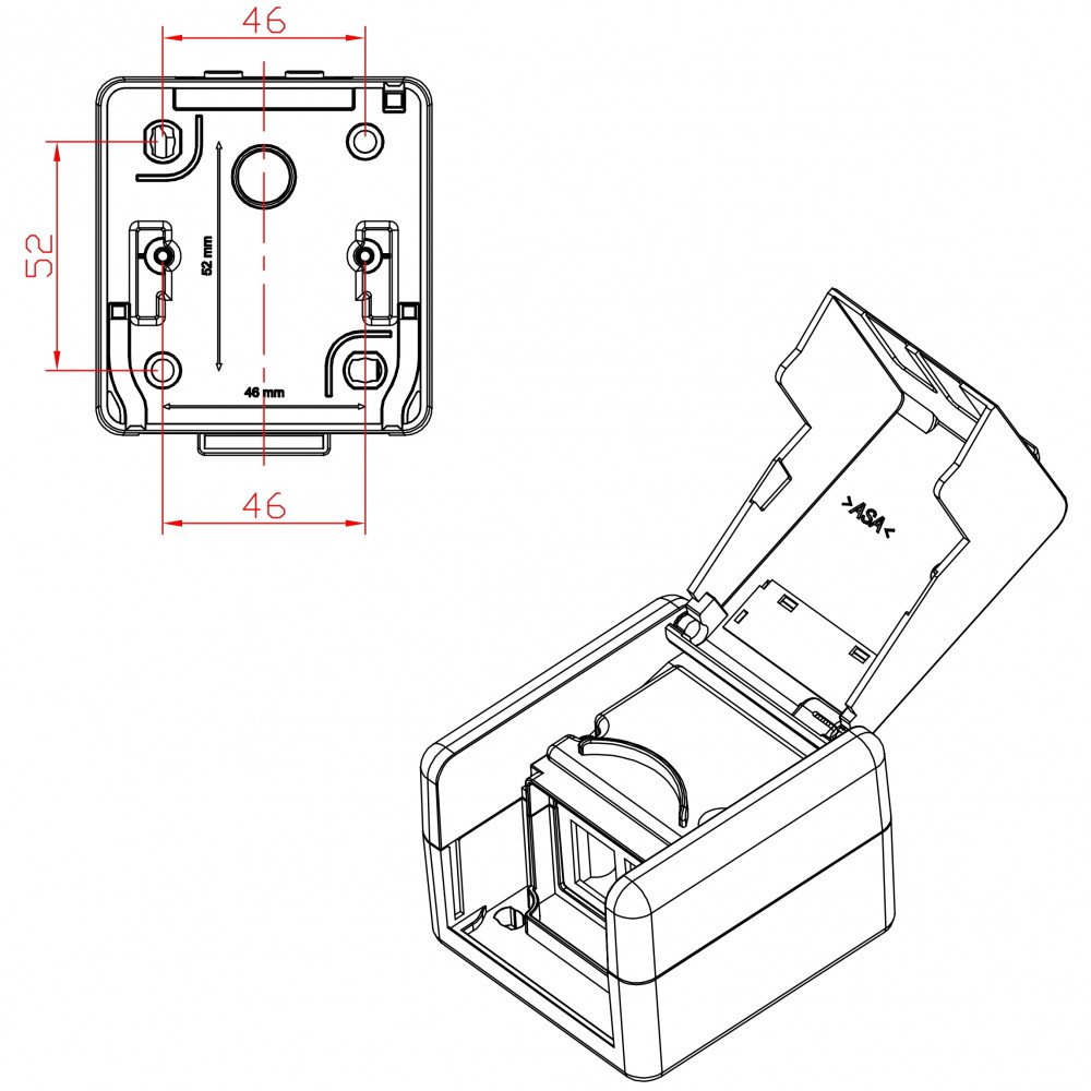 Накладна коробка призначена для встановлення, зокрема, у вологих приміщеннях і на відкритому повітрі. Коробка підходить для розміщення двох модулів KeyStone. Два еластичні ущільнення забезпечують легкий прохід кабелів діаметром від 5,0 до 9,5 міліметрів у гумовій вставці, корпус для поверхневого монтажу гарантує швидку та модульну установку. У підключеному стані відповідає класу захисту IP20, а закритому стані — IP44. Корпус для поверхневого монтажу виготовлений із стійкого до ультрафіолетового випромінювання та ударостійкого пластику. Велике віконце для маркування дозволяє легко маркувати.