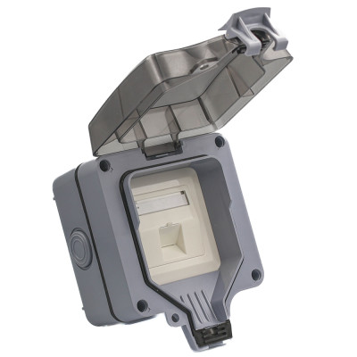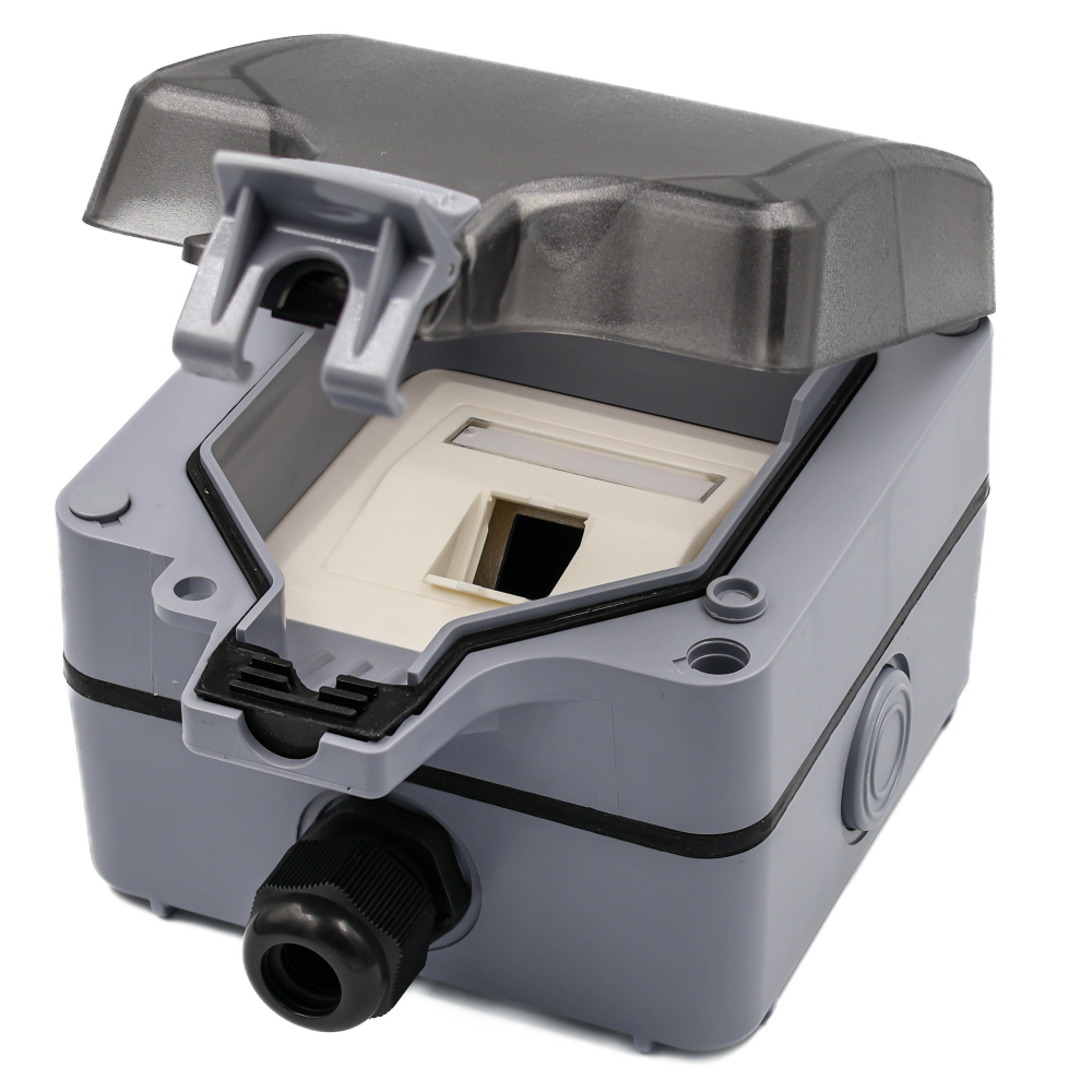 Розетка для поверхневого монтажу розрахована на один модуль KeyStone RJ45. Захист від пилу та води (IP66), підходить для встановлення всередині та зовні приміщень.