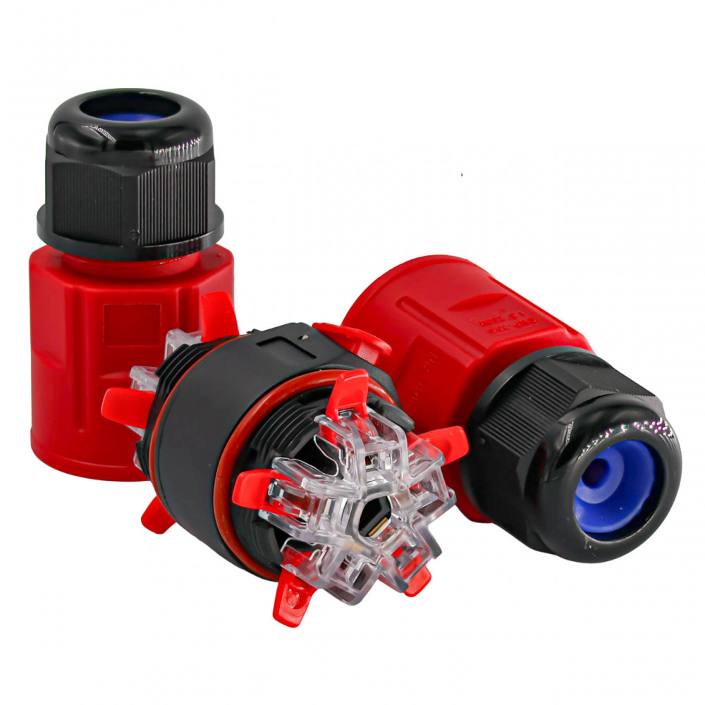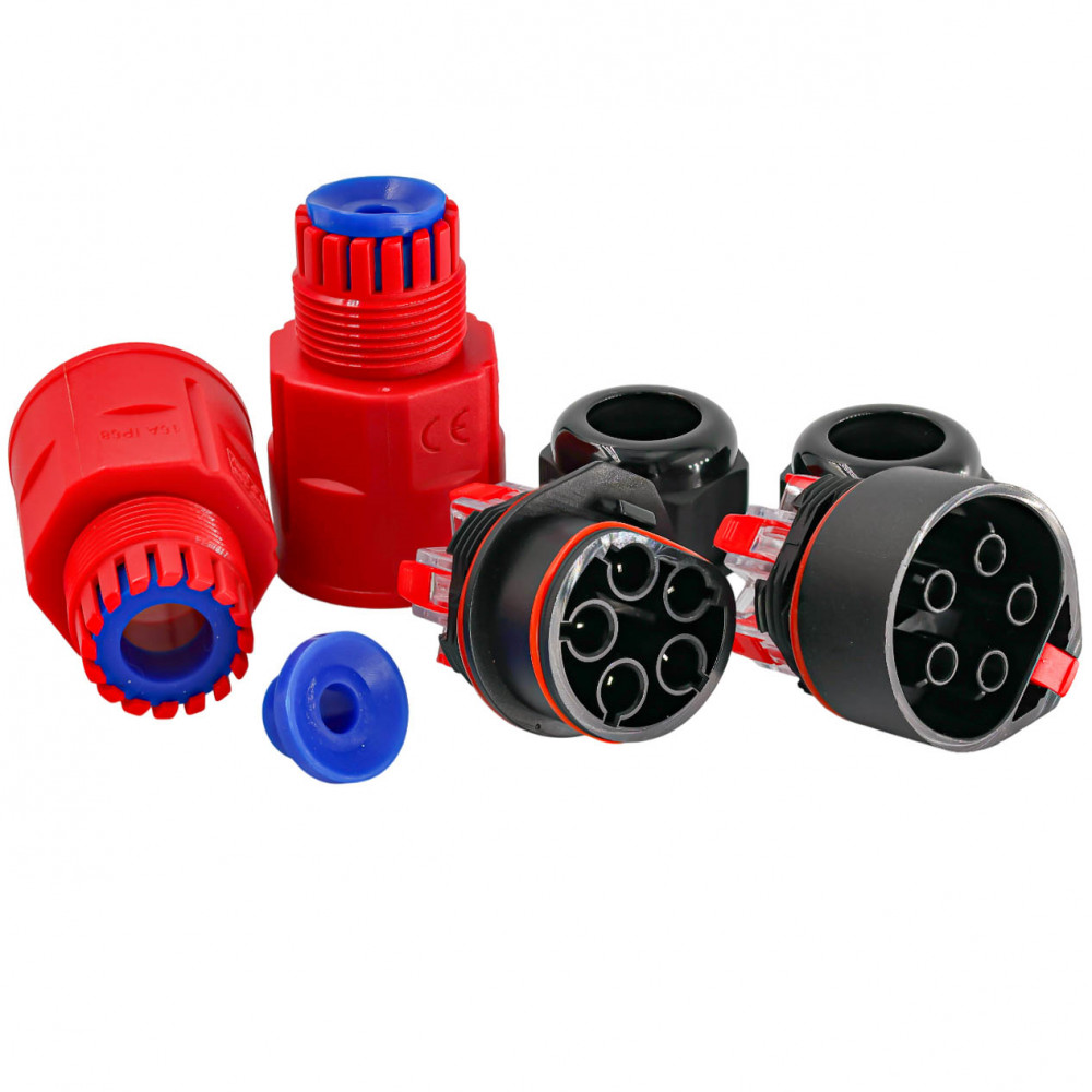 З'єднувач електричного кабелю, I-тип, 16A, 5P, 0.5-1.5/2.5мм², IP68, Red
