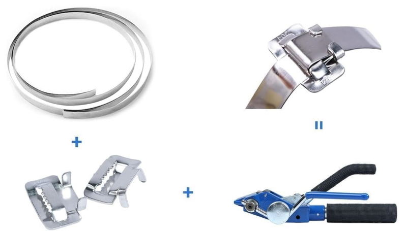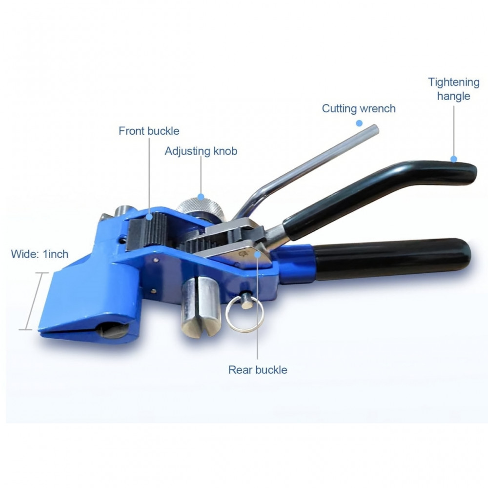 Натягувач для бандажної стрічки з храповим механізмом служить для натягу, загинання та обрізання сталевої бандажної стрічки.