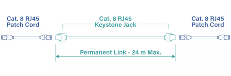 Cat8 RJ45 field termination connector meets Channel performance. For data center cabling design, 25G BASE-T и 40G BASE-T RJ45 copper cabling is a lower cost and optimal alternative to a fiber optic cabling with links in less than 30 meters. The Cat8 tool-free plug, an advancement of its predecessor Category 7, is also a great substitute for a Category 7 connector that is not an IEEE standard and is not approved by TIA/EIA. Category 7 does not use a traditional RJ45 interface, meanwhile Cat8 field termination plug makes network migration easier because it uses RJ45, the universal connector type that is the common and global standard for servers and switches.