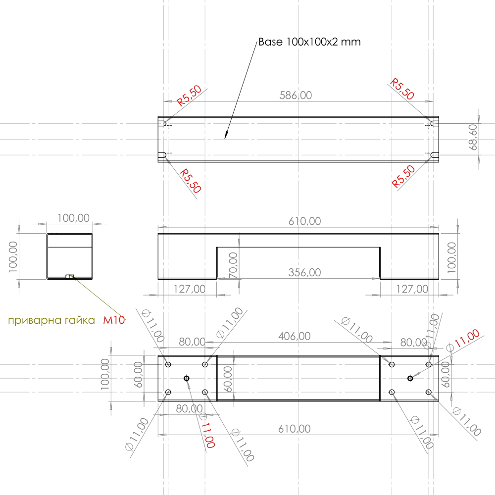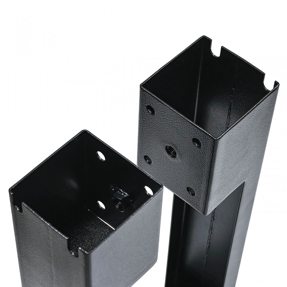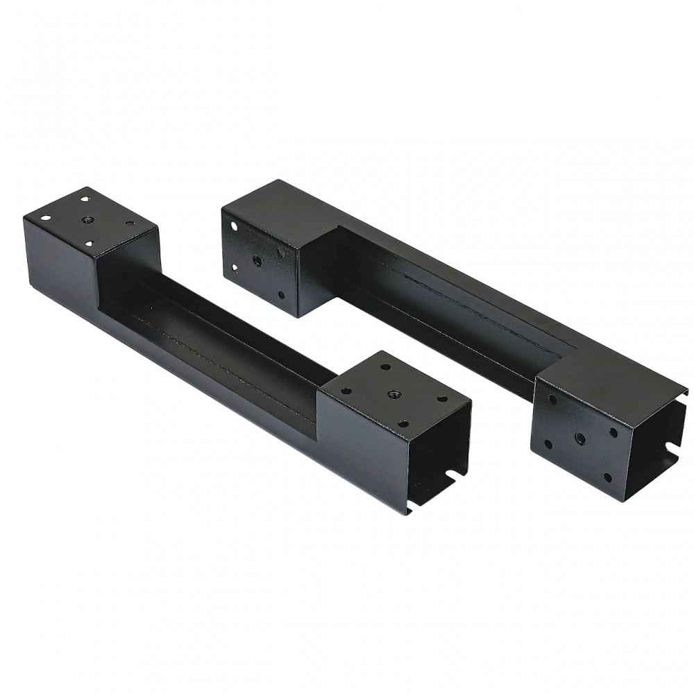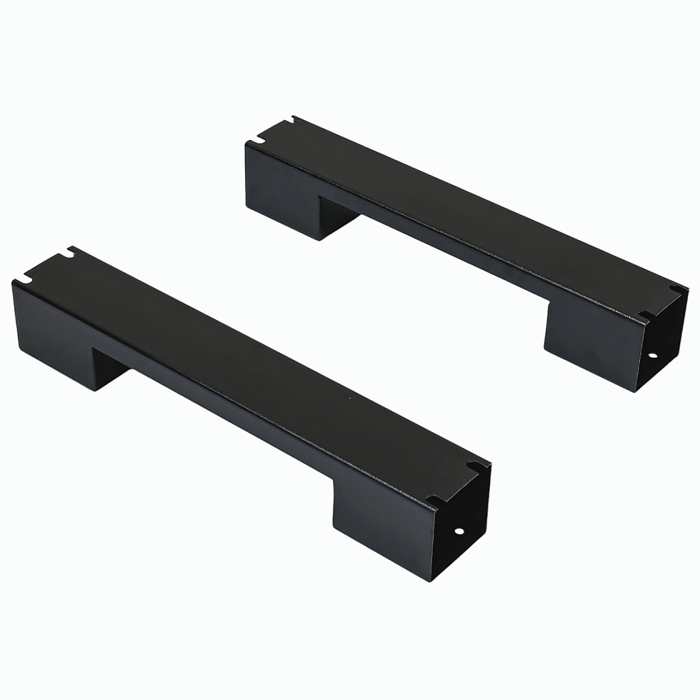 The base is used to raise the cabinet from the floor by 100 mm, allowing for easier access for cables from the floor. The kit consists of two parts, one for the front and one for the rear. It is positioned under the bottom frame of the rack and secured with screws to the standard support mounting points. Screws are not included.