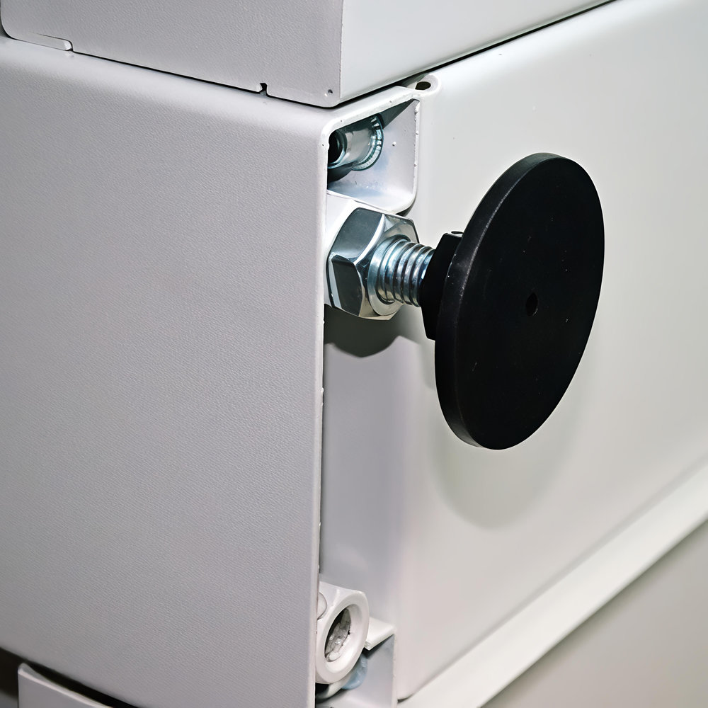 To attach to a server cabinet, 8 M10 screws are required (fixed at the mounting points for standard legs)