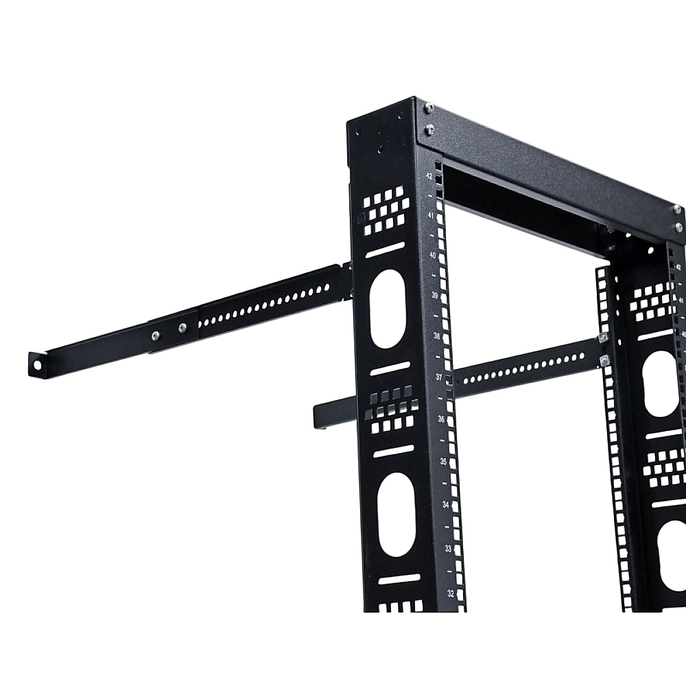 The rack-to-wall mounting kit is used to increase the vertical stability of single-frame racks. Recommended for long-term installation of a server rack or equipment with a depth of more than 300 mm. For fixing to a brick / concrete wall use metal anchors, for drywall it is recommended to use Molly expansion dowels. The clamps are attached to the rack frame in the grooves of the 1U (1 unit) high unit fastener located on the side of the vertical rails.