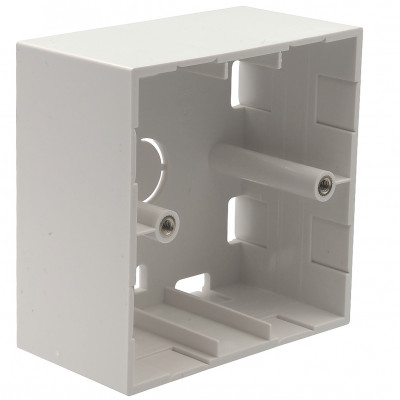 На боковых стенках предусмотрена насечка для повода пластикового короба  или гофротрубы. Внешняя монтажная коробка рассчитана на установку одной рамки с силовой или телекоммуникационной розеткой. Это может быть одна розетка 220В (белого, красного, черного цвета) или два порта RJ-45.