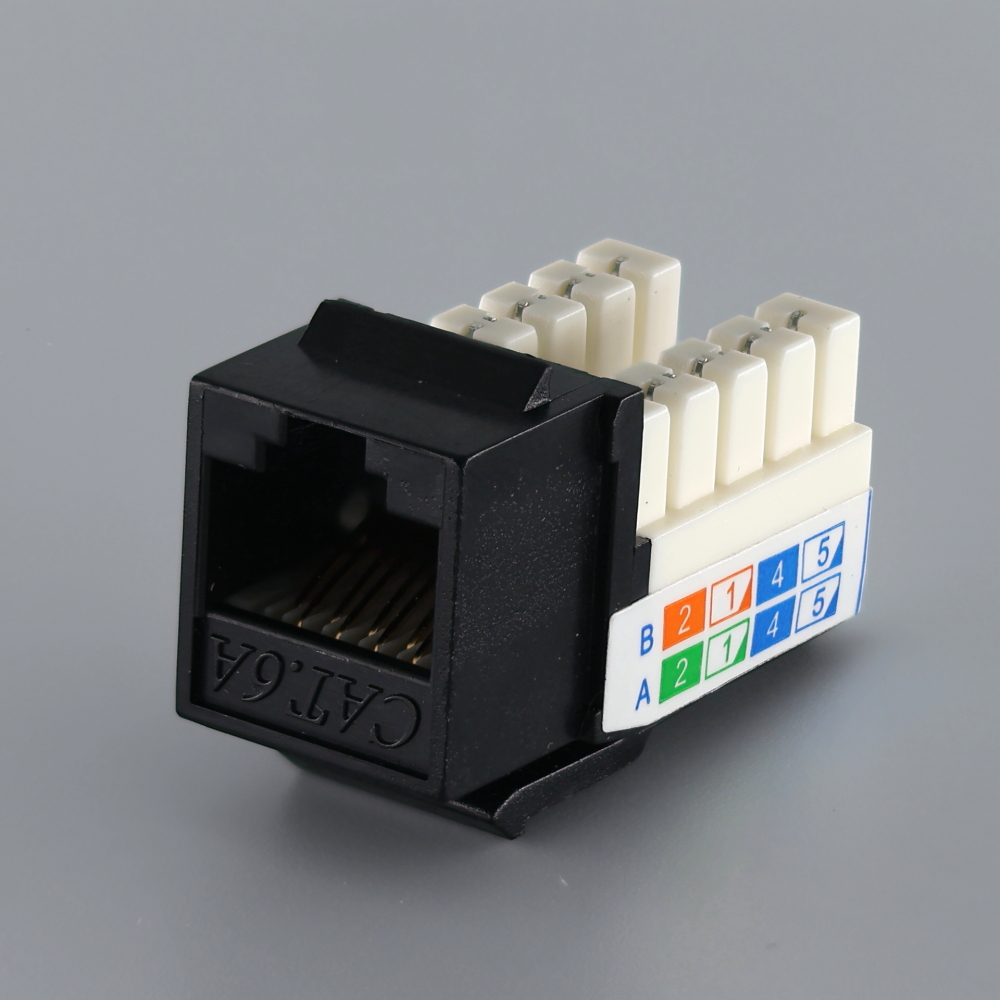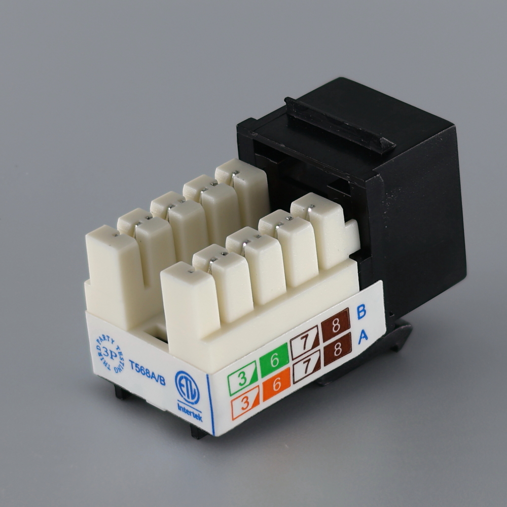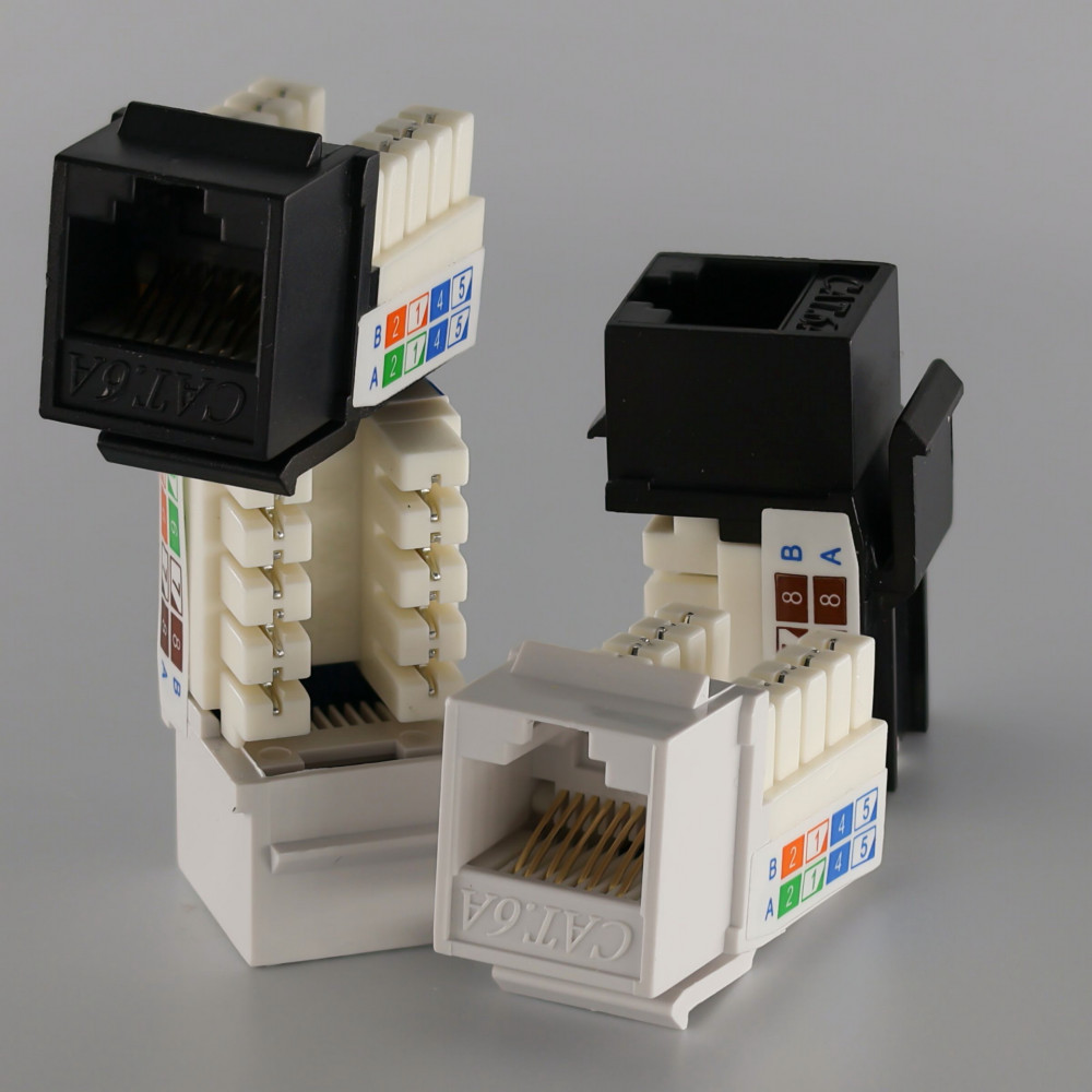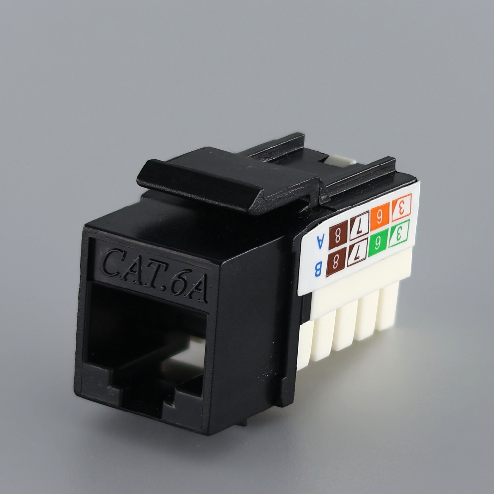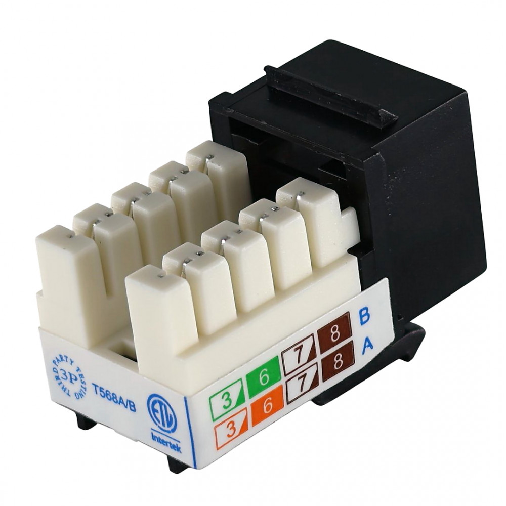 Компактный размер, совместимый с кабелем UTP категории 5e, 6, 6a, цветовая маркировка, T568A или T568B, IDC-контакт: бронзовый и луженый, разъем: 8P8C 50 микродюймов, позолоченный