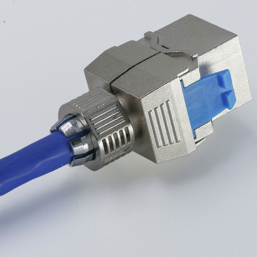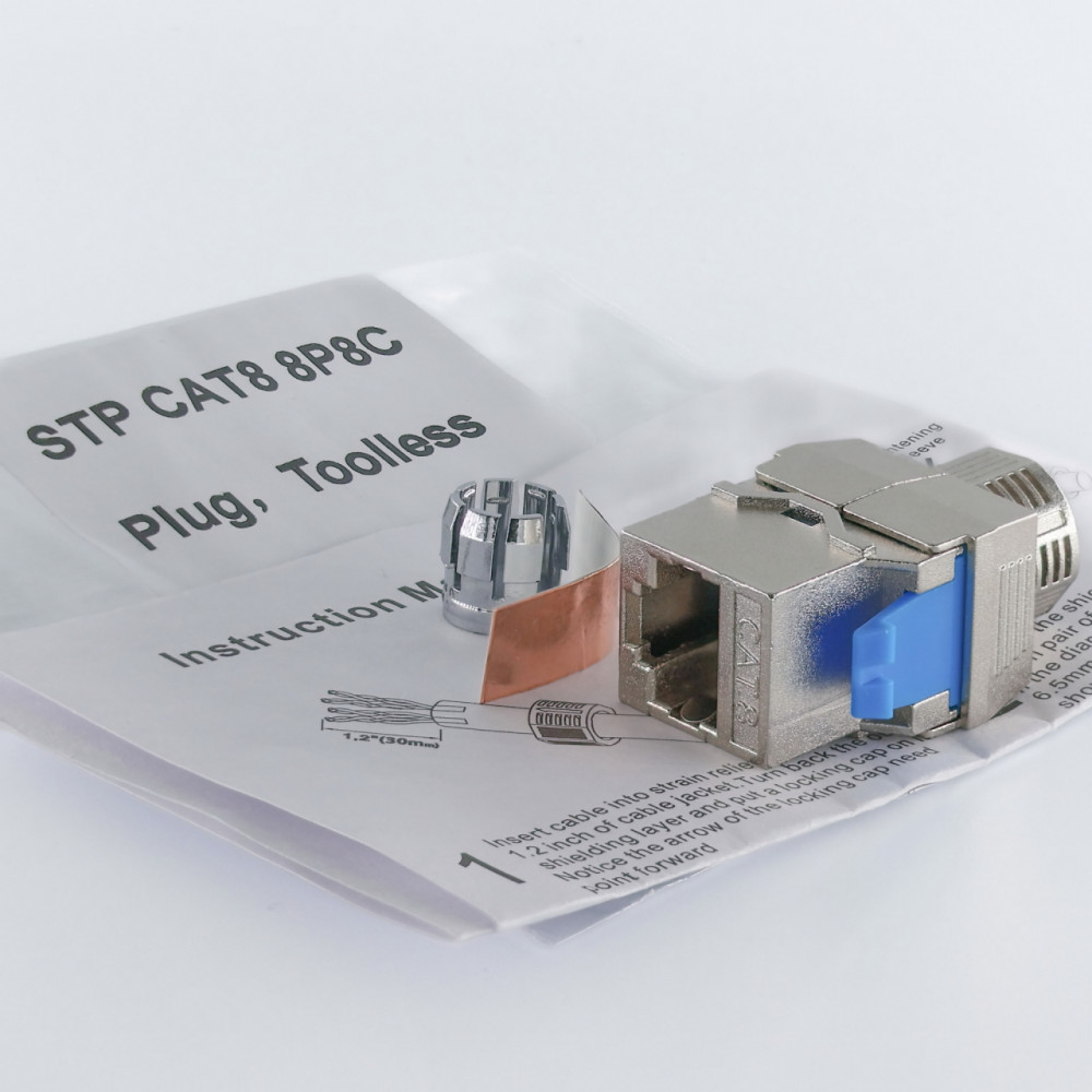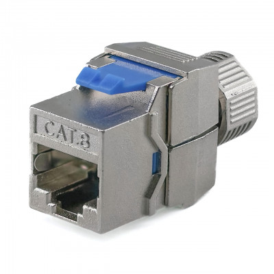Полностью экранированный KeyStone модуль-разъем RJ-45 Cat8 8P8C, удобный монтаж. Разъем Cat8 позволяет передавать данные до 2,5 раз быстрее для соединений коммутатор-сервер в центрах обработки данных, соответствует PoE++ (также известна как 4PPoE и IEEE802.3bt Type 4). Корпус выполнен с металла, заделка кабеля происходит через IDC контактную группу. Подходят для обычных условий и промышленной среды (IP20). Экранированный литой корпус защищает от помех Накручивающийся хвостовик (механизм байонет) надежно удерживает кабель . Устанавливается в наборные патч-панели или же в корпус информационной розетки.